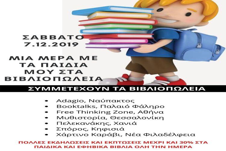 7 βιβλιοπωλεία στην Ελλάδα, παίρνουν και φέτος, για τέταρτη συνεχή χρονιά, την πρωτοβουλία να γιορτάσουν μια μέρα αφιερωμένη στα βιβλία και τους μικρούς αναγνώστες. Το Σάββατο, 7 Δεκεμβρίου, γονείς και παιδιά προσκαλούνται να περάσουν μαζί «μια ημέρα στο βιβλιοπωλείο», σε μια μεγάλη γιορτή της ανάγνωσης από μικρούς αλλά και μεγάλους, γεμάτη εκπλήξεις και προσφορές.