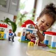 Το σετ LEGO® DUPLO® [10875] Το Πρώτο Μου Τρένο είναι ιδανικό για να παίξουν πολλά παιδιά μαζί για πρώτη φορά. Να το έχετε πρόχειρο όταν το παιδί σας έχει καλεσμένους ή όταν επισκέπτεστε κάποιο φίλο του. Καθώς το παιχνίδι με άλλους ίσως να μην είναι τόσο εύκολο για παιδιά τριών ή τεσσάρων ετών, μπορείτε να τα βοηθήσετε λίγο στην αρχή λαμβάνοντας μέρος στην καθιέρωση των κανόνων. Αυτό θα τους δώσει τη δυνατότητα να διασκεδάσουν και θα μειώσει τις συγκρούσεις. Μιλήστε στα παιδιά για τα τρένα, για παράδειγμα, ότι μια ομάδα ανθρώπων φτιάχνει τις μηχανές, ενώ μια άλλη ομάδα κατασκευάζει τις σιδηροτροχιές πάνω στις οποίες κινούνται τα τρένα. Ζητήστε από ένα παιδί να φτιάξει τις τροχιές ενώ το άλλο κατασκευάζει το τρένο. Μετά εξηγήστε τους πώς δουλεύει ο σιδηροδρομικός σταθμός: ότι υπάρχει ένας οδηγός τρένου που οδηγεί το τρένο και ότι υπάρχουν επιβάτες που αγοράζουν εισιτήρια για να ταξιδέψουν με αυτό. Μοιράστε αυτούς τους δύο ρόλους στα παιδιά, βοηθήστε να παίξουν ένα καλό παιχνίδι ρόλων, και μετά απομακρυνθείτε και παρατηρήστε με χαρά τις πρώτες επιτυχημένες αλληλεπιδράσεις του παιδιού σας με ένα φίλο.